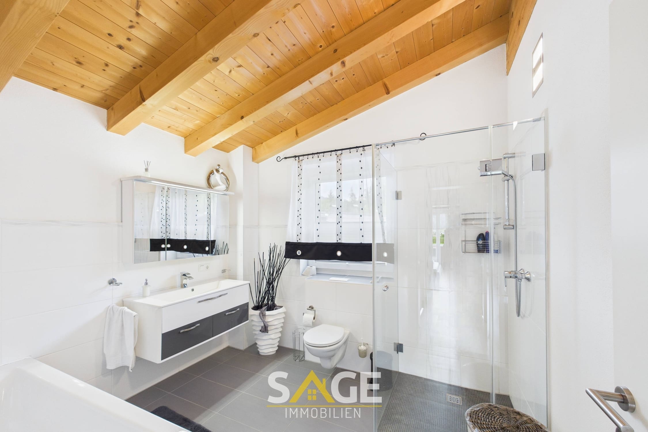 EFH with approx. 157 m² living space, plot approx. 336 m², kitchen, living-dining area with fireplace, guest WC with shower,