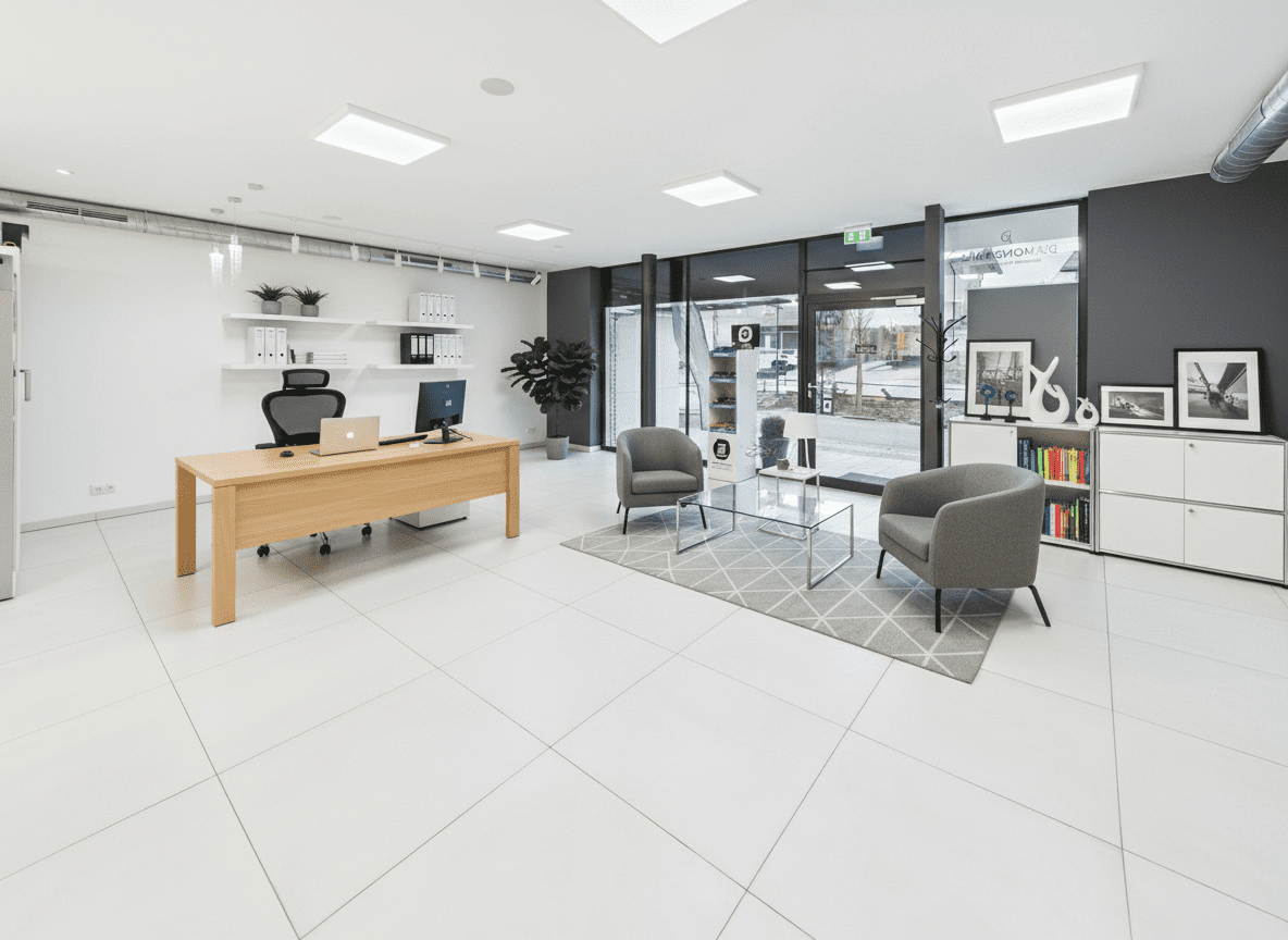 Die großzügige Fläche ermöglicht es Ihnen, Ihre Kunden in einem professionellen Ambiente zu empfangen.