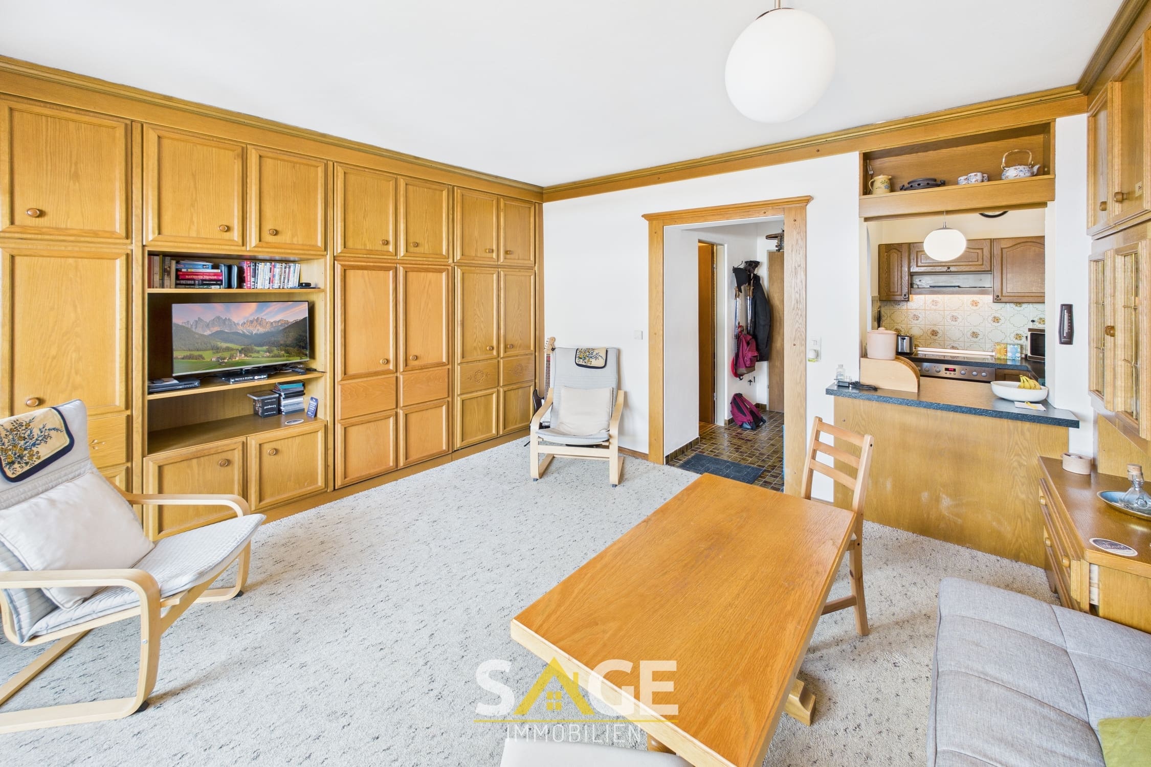 Die gepflegte Wohnung verfügt über ein offene Küche im geräumigen Wohn- Ess- und Schlafbereich mit Ausgang auf die nach Süden orientierte Loggia, einen Flur, sowie ein Badezimmer mit Dusche und WC.